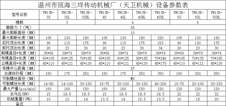 Current location:Home  / Products  / Four die four punch cold heading machine  / └ TW13B(M8) / TW13B four die four punch multi station cold heading machine