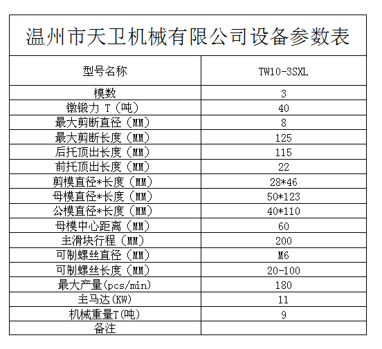 您當前的位置:首頁 / 產品中心 / 三模三沖冷鐓機 / └ TW10B(M6)全自動多工位冷鐓機 / TW10B-3SXL全自動多工位冷鐓機