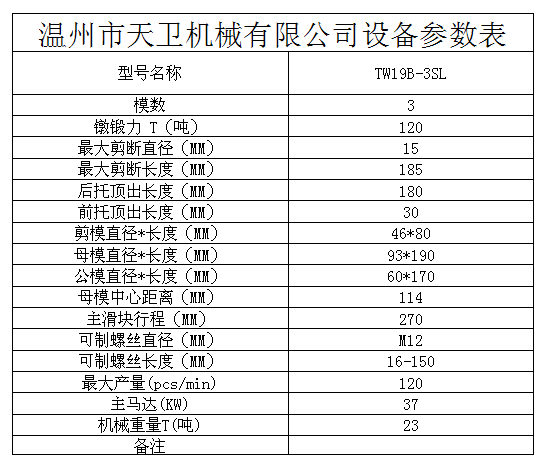 您當(dāng)前的位置:首頁 / 產(chǎn)品中心 / 三模三沖冷鐓機 / └ TW19B(M12)多工位冷鐓機 / TW19B-3SL全自動多工位冷鐓機
